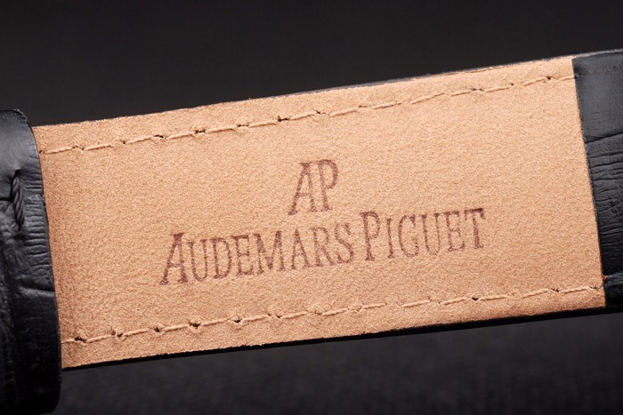 Bracelet: Heat Audemars Piguet embossed black crocodile leather strap with Audemars Piguet engraved stainless steel fold-in clasp