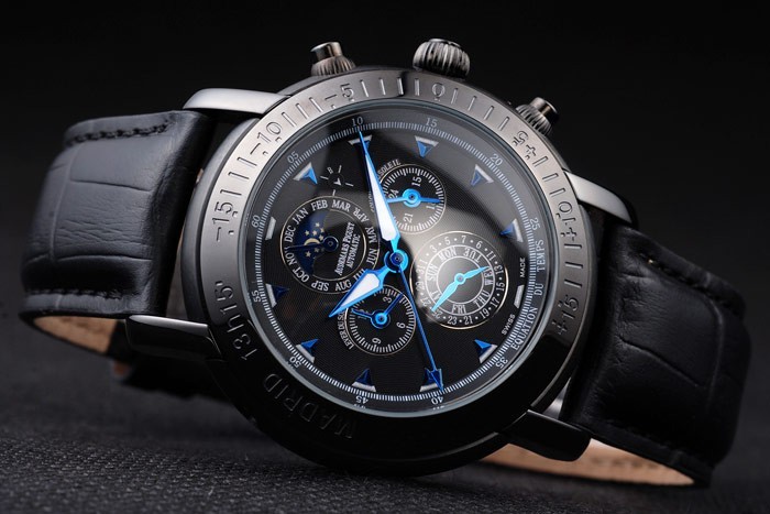 Bracelet : Heat embossed Audemars Piguet black crocodile leather strap with Audemars Piguet engraved ion-plated fold-in clasp