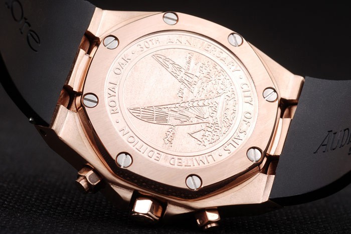 Back: Rose-gold plated screwed down back with Audemars Piguet logo and engravings