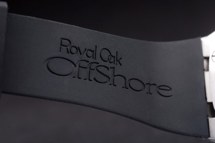 Bracelet: Audemars Piguet Royal Oak Offshore embossed black rubber strap with Audemars Piguet engraved brushed stainless steel fold -in clasp