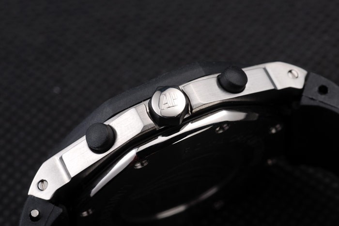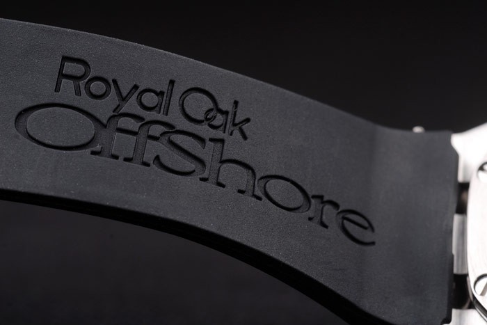 Bracelet: Audemars Piguet Royal Oak Offshore embossed black rubber strap with Audemars Piguet engraved polished stainless steel fold -in clasp
