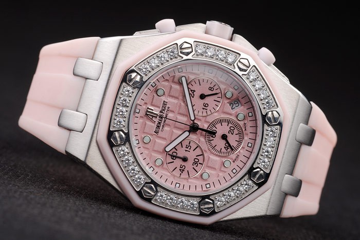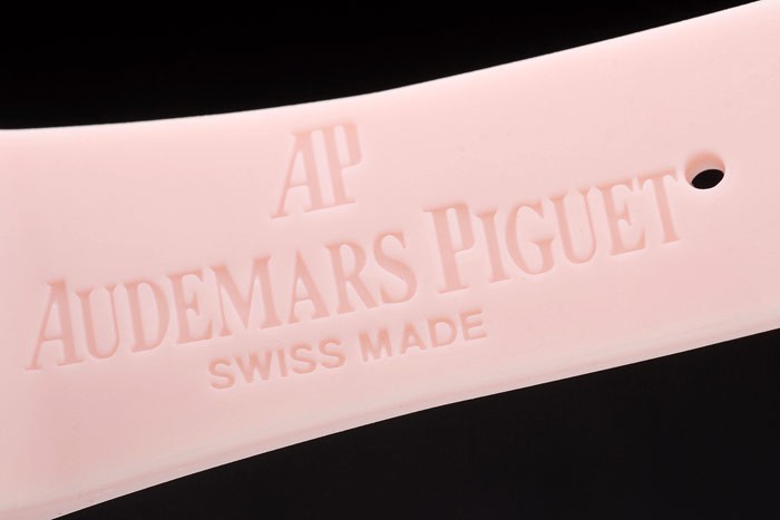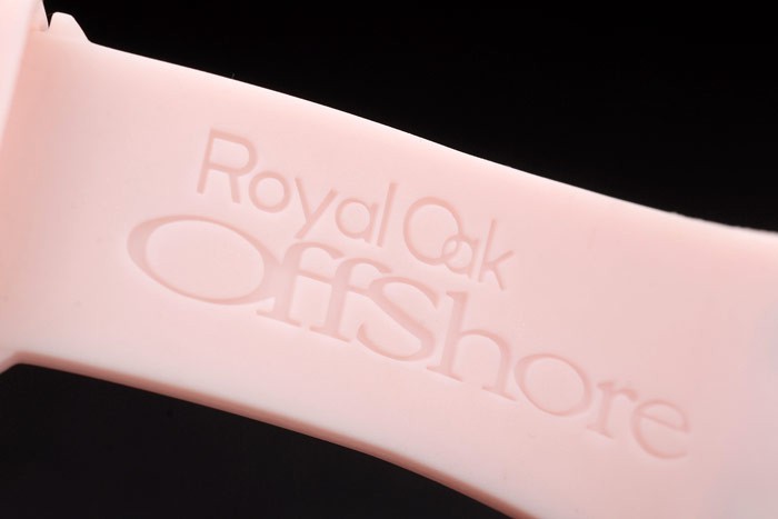 Bracelet: Audemars Piguet Royal Oak Offshore embossed pink rubber strap with Audemars Piguet engraved brushed stainless steel fold -in clasp