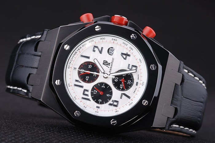 The Audemars Piguet Royal Oak Offshore Replica Watch 3316 by Royal Oak is a high-quality, stylish timepiece that is perfect for men. The black color, ion-plated stainless steel case and black crocodile leather strap with white stitching give it a luxurious and sophisticated look. The Japanese Miyota quartz movement ensures accurate timekeeping. The sapphire crystal glass and ion-plated hexagonal bezel add to the overall durability of the watch. The flip-over hook clasp and audemars piguet logo engraved crown add to the elegant design. In conclusion, it’s really good.