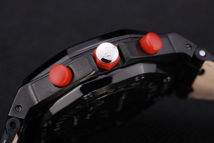 Crown: Stainless steel Audemars Piguet logo engraved red enamel cutwork crown with two smaller crowns on either side of it