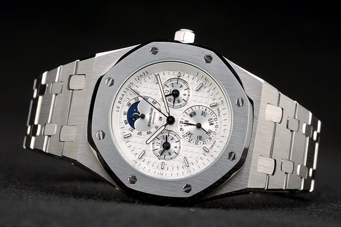 Crown: Stainless steel Audemars Piguet logo engraved hexagonal crown