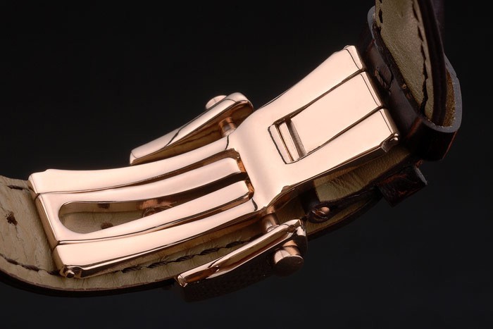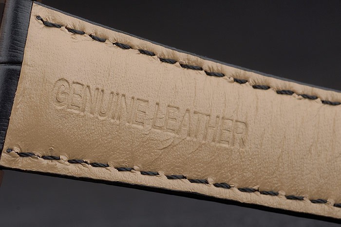 Bracelet: Breguet heat embossed black crocodile leather strap Brequet engraved with 18k rose-gold plated fold-in hook-buckle clasp