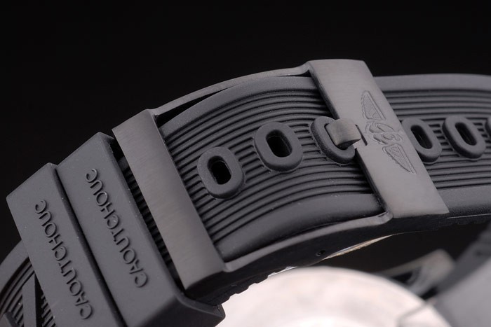 Bracelet: Black rubber strap with logo engraved ion-plated stainless steel hook-buckle clasp