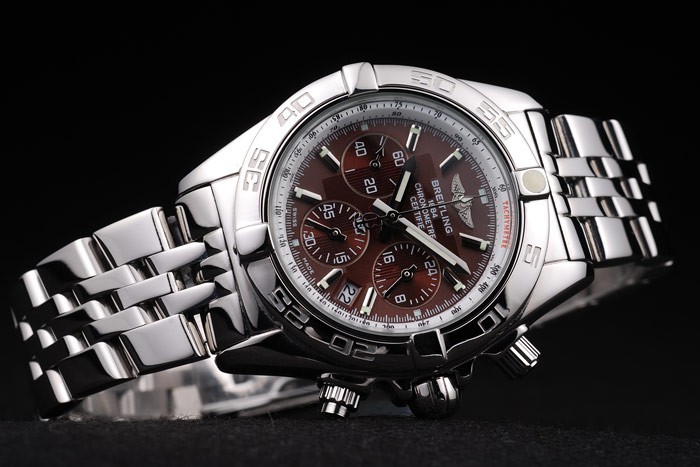 Bracelet: Polished stainless steel link bracelet with Breitling engraving and fold-in clasp with Breitling 1884 and logo engraved on top