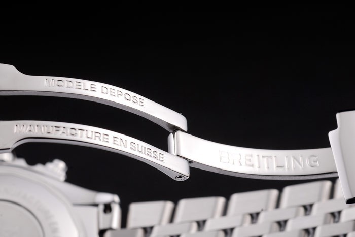 Bracelet: Polished stainless steel link bracelet with Breitling engraving and fold-in clasp with Breitling 1884 and logo engraved on top