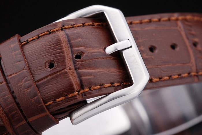 Bracelet: IWC Schaffhausen heat embossed brown crocodile leather strap with IWC inscribed stainless steel hook-buckle clasp