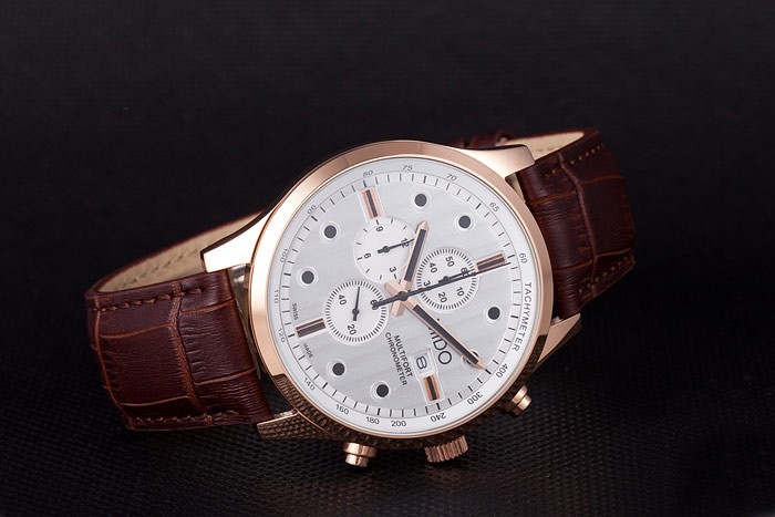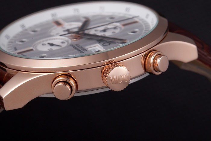 Mido Multifort Brown Croco Leather Strap White Dial 80287