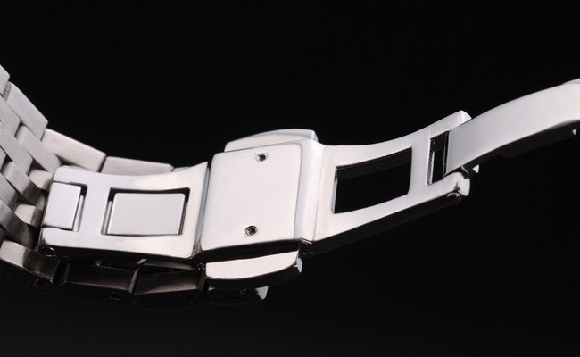 Bracelet: Brushed and polished stainless steel link bracelet with push-button release hidden clasp