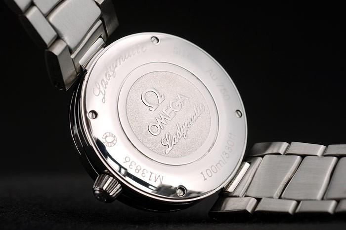 Back: Polished stainless steel screwed down back with Omega Ladymatic engraving