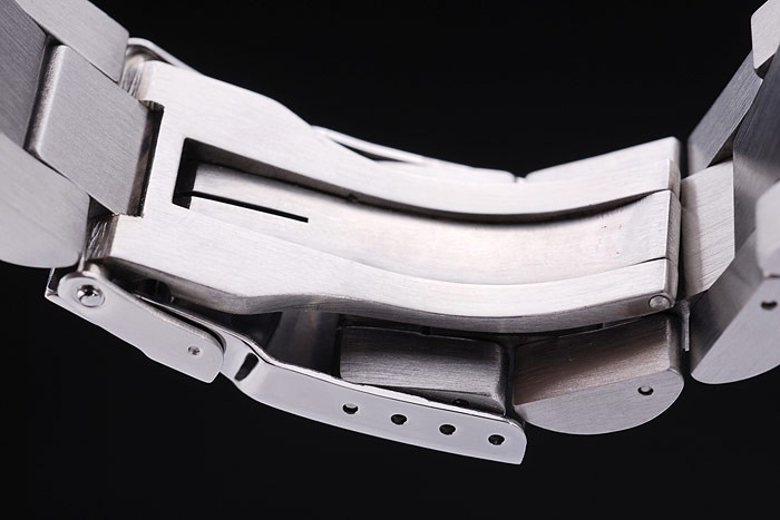 Bracelet: Brushed and polished stainless steel link bracelet with deployment Oris inscribed clasp