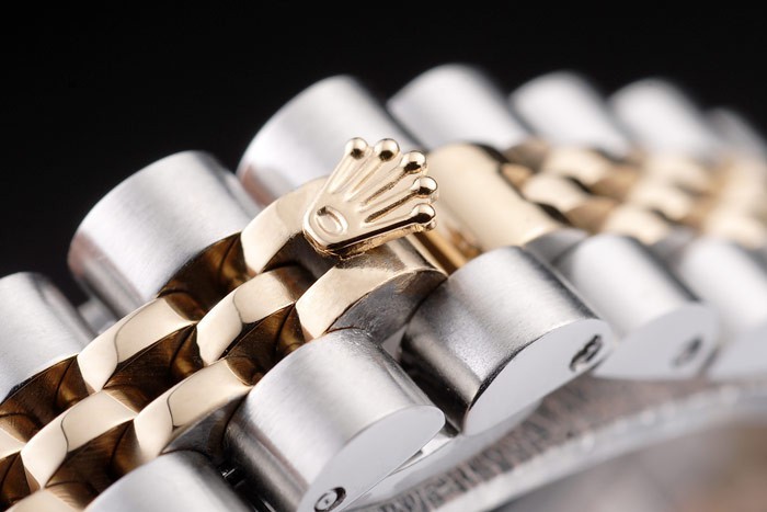 Crown: 18k yellow gold plated stainless steel cutwork crown with Rolex logo