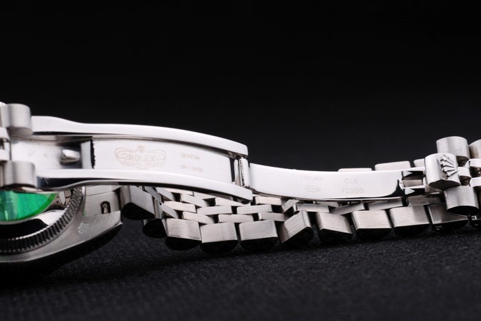 Back: Stainless steel push-in case back with green Rolex logo stamp