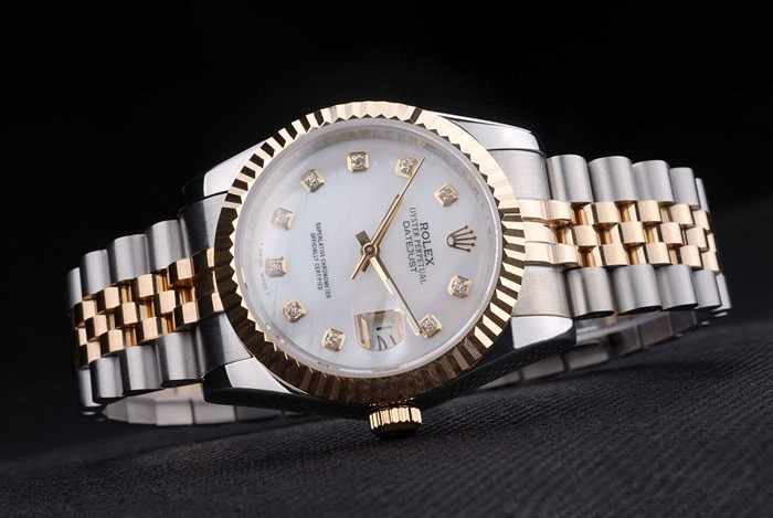 Crown: 18k yellow gold plated steel cutwork crown with Rolex logo
