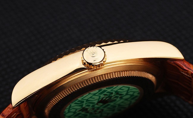Crown: 18k yellow gold plated steel cutwork crown with Rolex logo