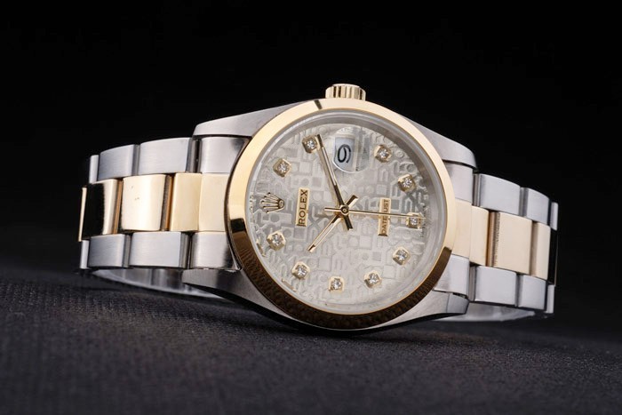 Crown: 18k yellow gold plated steel cutwork crown with Rolex logo