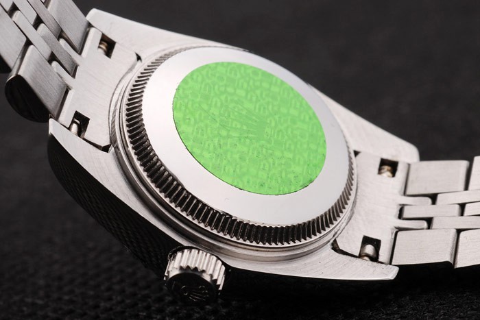 1Back: Push in stainless steel back with green Rolex sticker and markings
