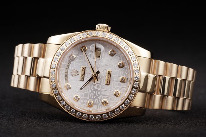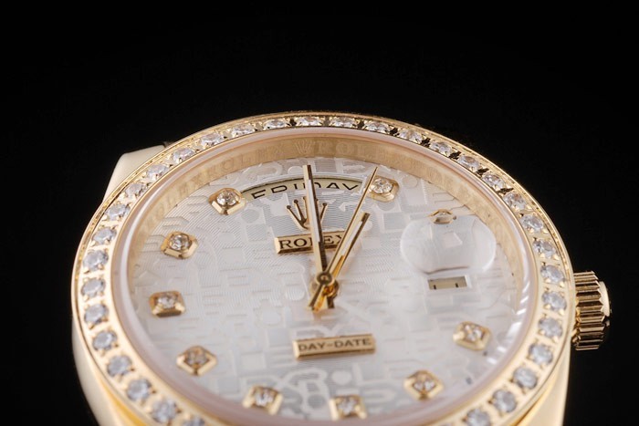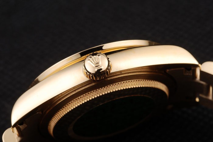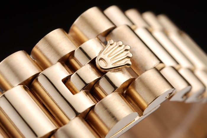 Crown: 18k yellow gold plated steel cutwork crown with Rolex logo