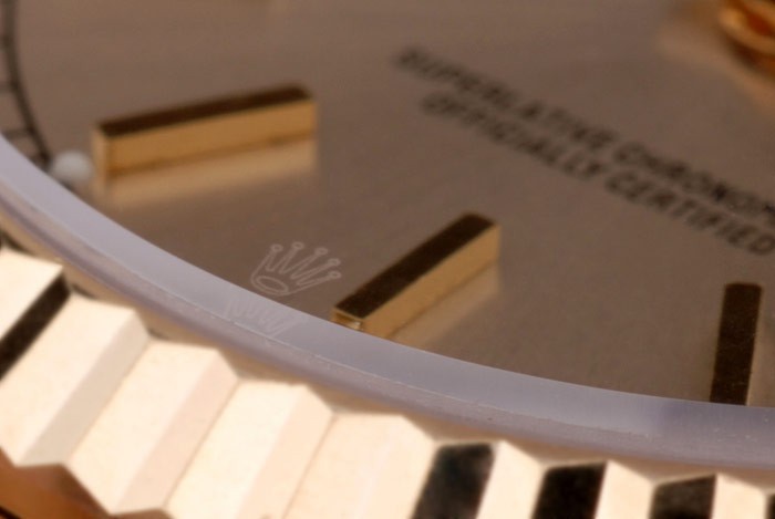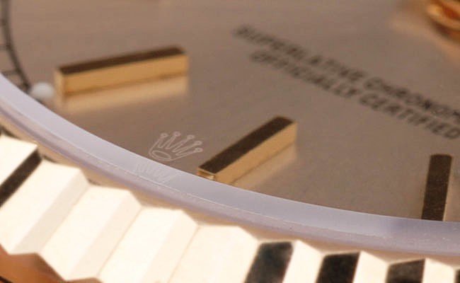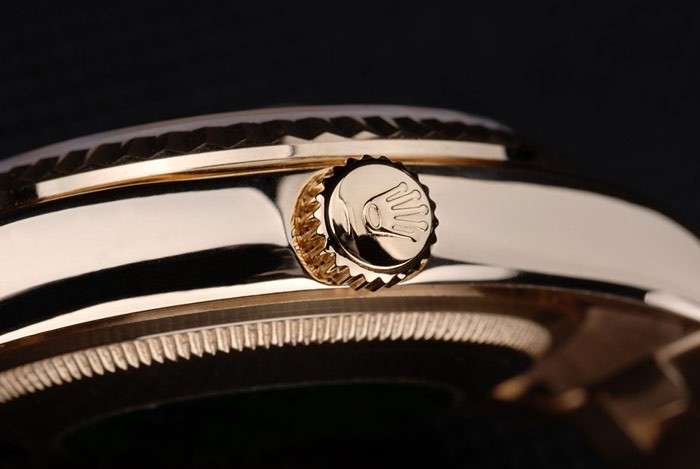 Crown: 18k yellow gold plated steel cutwork crown with Rolex logo