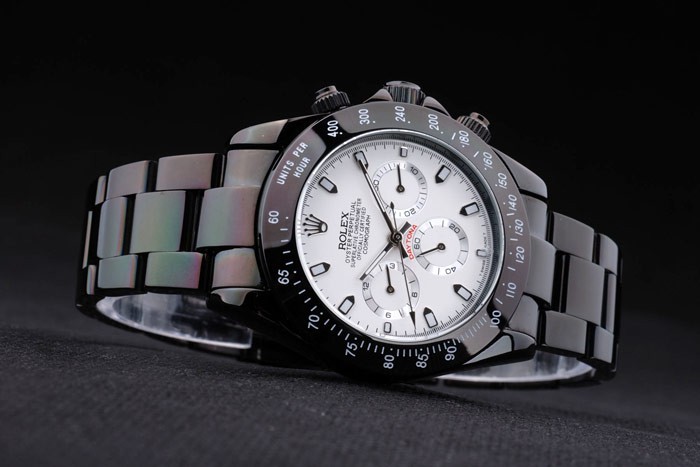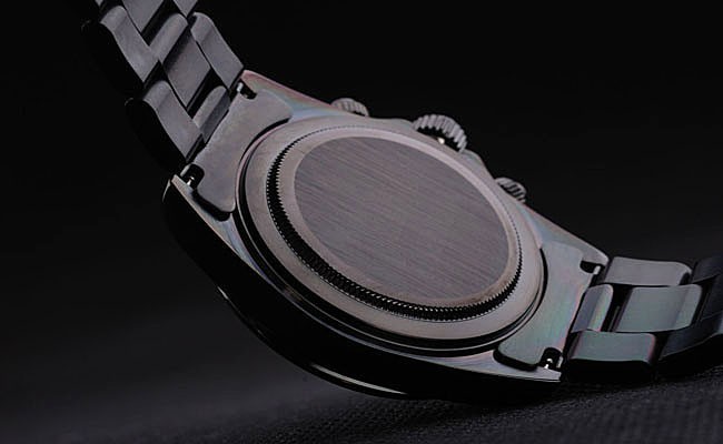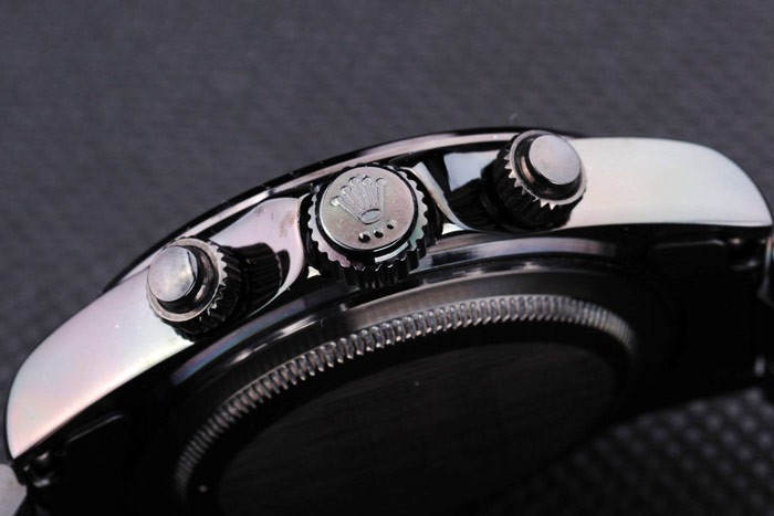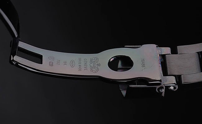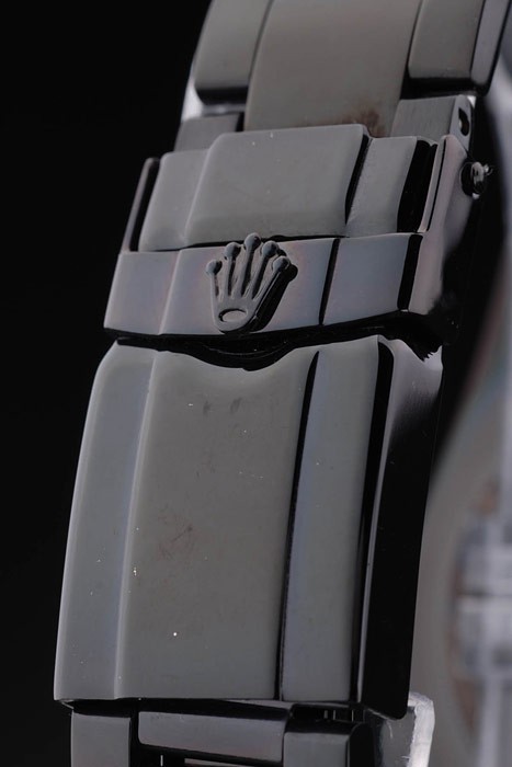 Bracelet: Black enameled stainless steel link bracelet with Rolex engraving deployment clasp displaying Rolex logo