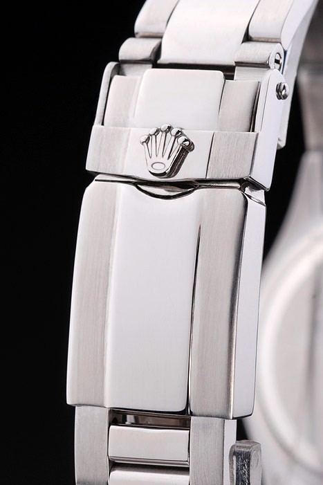 Crown: Polished stainless steel cutwork crown with Rolex logo and two additional crowns on either side of it