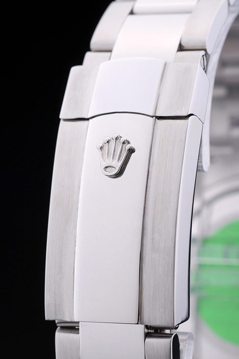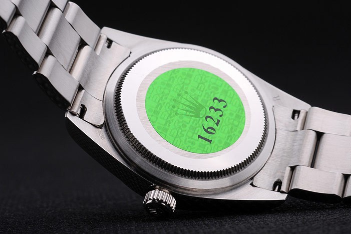 Back: Stainless steel push-in case back with green Rolex engraving stamp