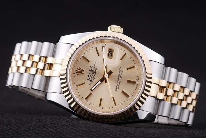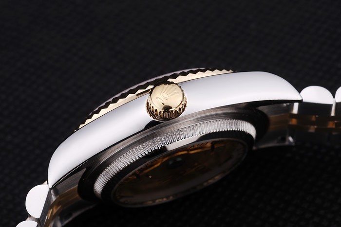 Crown: 18k yellow gold plated cutwork crown with Rolex logo engraving