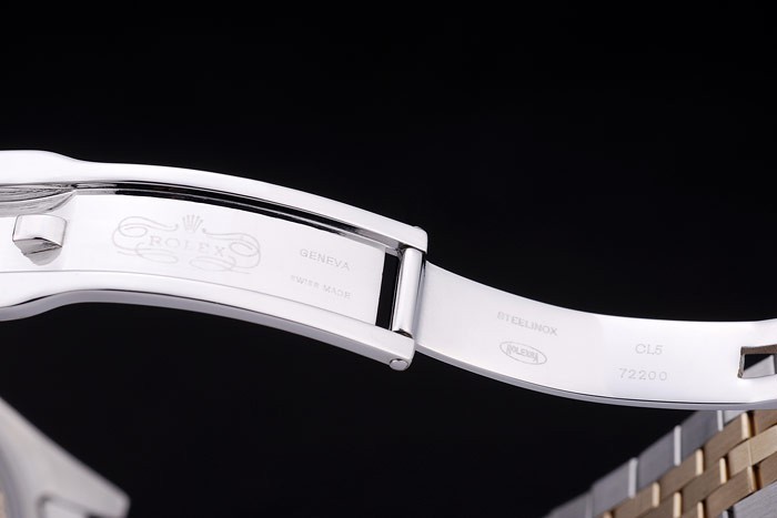 Bracelet: Brushed stainless steel and yellow gold link bracelet with Rolex logo hidden clasp
