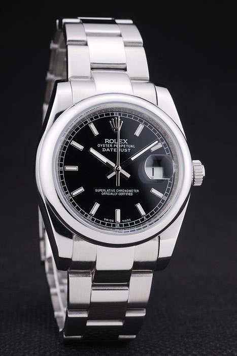 Back: Stainless steel snap-in back with green Rolex authenticity sticker