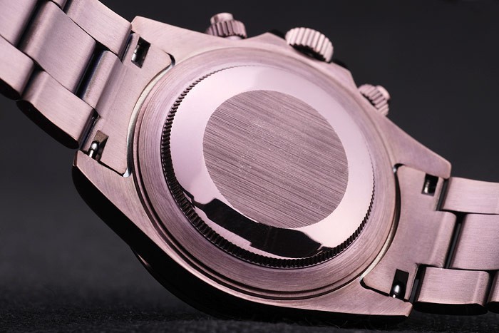 Back: Rosy brown powder coated brushed stainless steel snap-in back with Rolex inscription