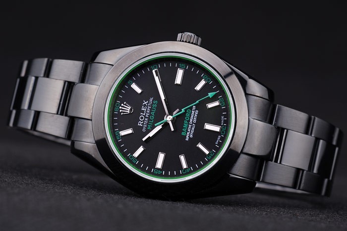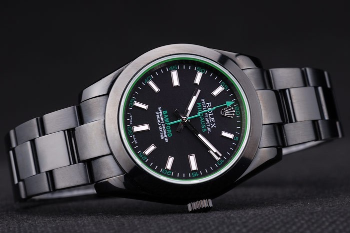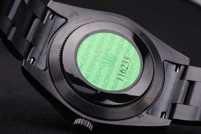 Back: Ion-plated snap-in back with green Rolex authenticity sticker