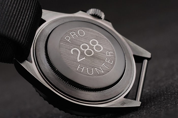 Back: Ion-plated stainless steel push-in case back with engravings