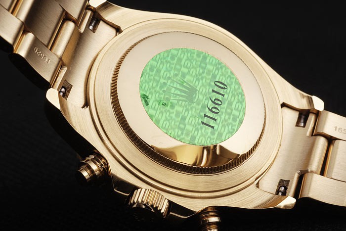 Back: Rose-gold push-in back with green Rolex logo stamp