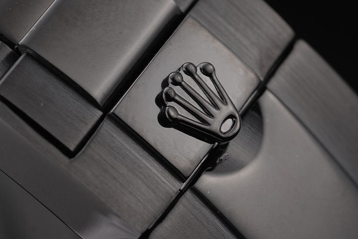 Bracelet: Ion-plated stainless steel link bracelet with engraved fold-in clasp with Rolex logo on top